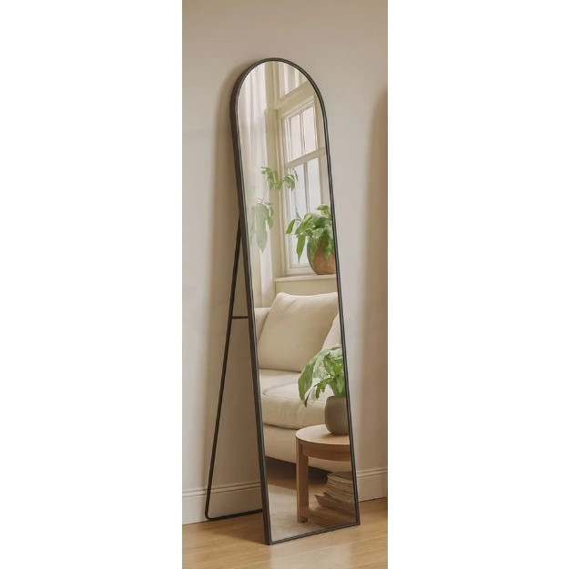Огледало на стойка с метална рамка и размери 147/36 см, съчетаващо елегантен дизайн и практичност за всеки интериор. Високата форма позволява цялостен поглед върху визията, който го прави идеално за спалня, гардеробна или коридор. Здравата метална рамка осигурява стабилност и модерна визия, а стойката позволява лесно позициониране без монтаж на стената. Подходящ както за ежедневна употреба, така и като стилен декоративен акцент, който придава пространство и светлина на помещението.