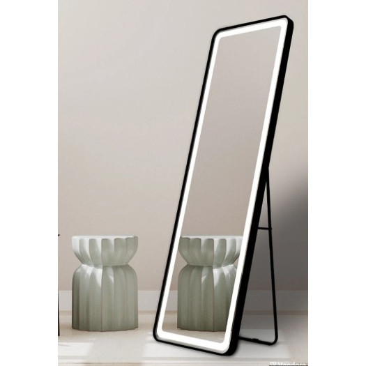 Светещо огледало на стойка с метална рамка и размери 160/50 см, съчетаващо модерен дизайн и висока функционалност. Вграденото осветление осигурява равномерна светлина, идеална за гримиране, обличане и ежедневна подготовка. Здравата метална рамка придава стабилност и елегантна визия, подходяща за баня, гардеробна или салон. Големият размер позволява пълен поглед върху визията, а осигурява лесно позициониране без необходимост от монтаж. Стилен и практичен акцент, който добавя светлина, комфорт и модерно излъчване към всяко пространство.